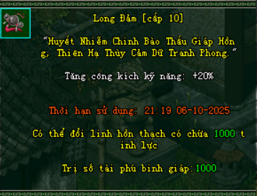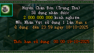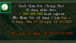 - Sử dụng nhận: 5.000.000 Exp và ngẫu nhiên nhận được 1 trang bị xanh thuộc tính cao