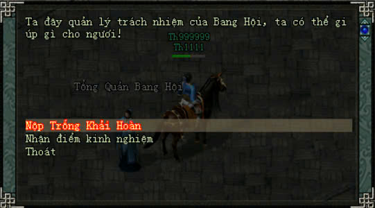 - Chỉ Bang chủ và Trưởng lão nộp trống Npc Tổng quan bang hội